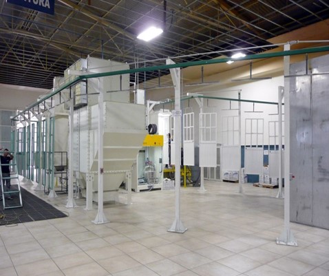 Línea automática de recubrimiento en polvo, cambio automático de color, 8 pies / minuto. Wagner